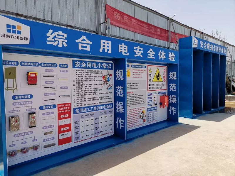 河南六建建筑集團(tuán)承建鄭州航空港區(qū)旭港置業(yè)有限公司護(hù)航中心項(xiàng)目工程從我公司購買了安全帽撞擊防護(hù)體驗(yàn)、綜合用電體驗(yàn)兩個(gè)體驗(yàn)項(xiàng)目為員工做安全教育培訓(xùn),項(xiàng)目部利用有限的場地設(shè)置最具代表性的體驗(yàn)項(xiàng)目為施工人員做安全教育培訓(xùn),為公司的這一舉動(dòng)點(diǎn)贊。